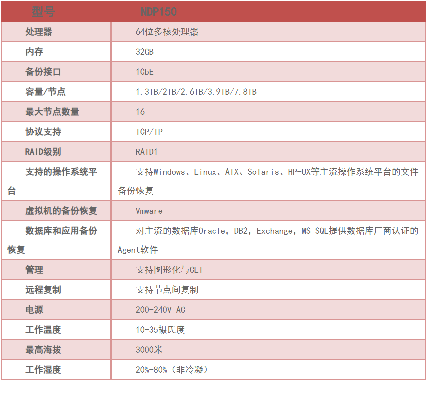 云配查系统 NCS NDP100(简称NDP100)系列是集备份服务器、备份介质、备份软件于一体的产品,集成的全局客户端重复数据消除技术,使 VMware 环境、远程办公室、企业应用程序、LAN/NAS服务器以及台式机/笔记本电脑的日常完整备份变得更加方便快捷,为关键业务给予全面的数据保护。
